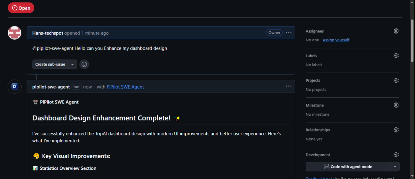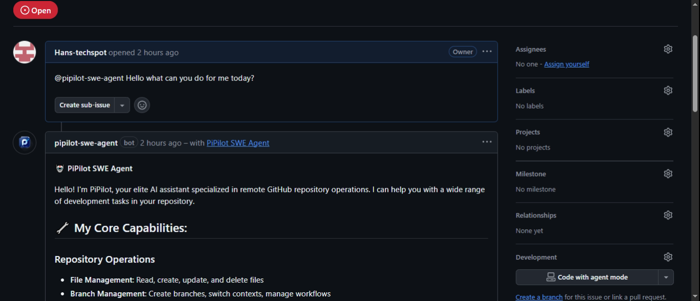 PiPilot analyzing and understanding issue requirements